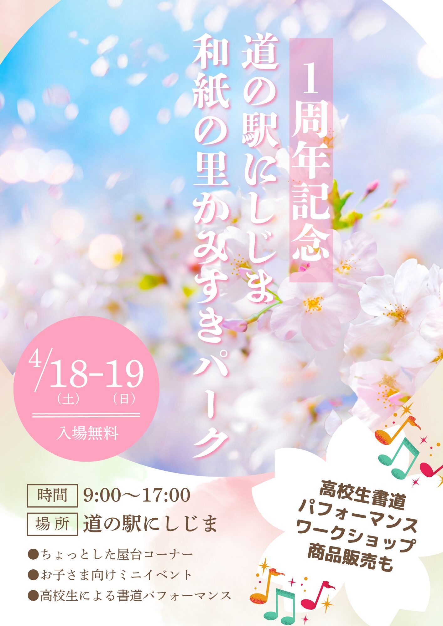 4月18日、道の駅にしじま和紙の里かみすきパークは1周年を迎えます。